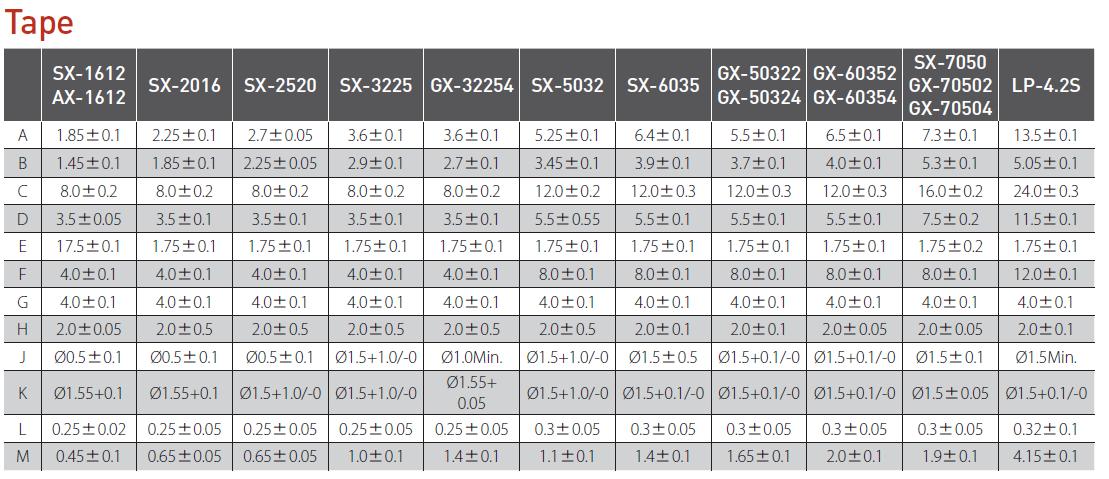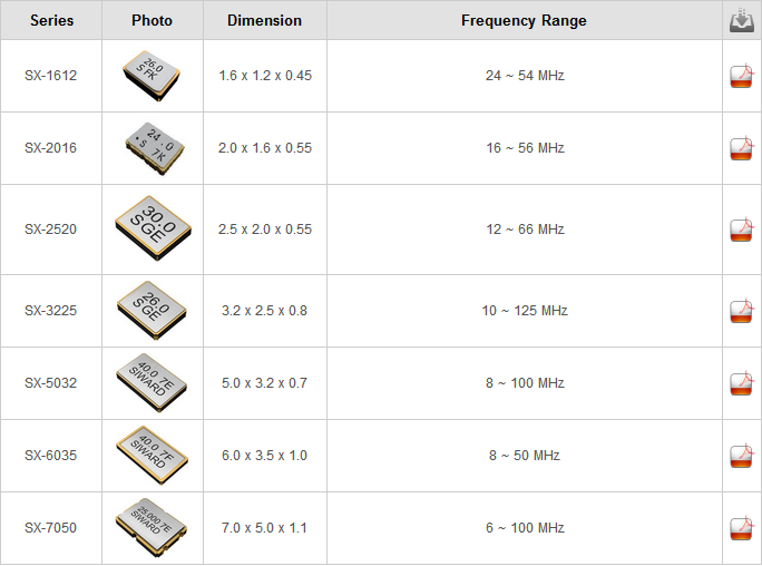 | 晶振目錄 | 希華貼片晶振型號SX-5032mm | |
