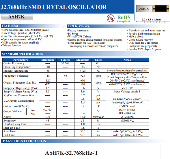 | 輸出頻率范圍 | fo | 32.768KHZ |
