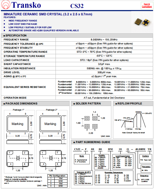 | Transko晶振 | 單位 | CS32晶振 | 石英晶振基本條件 |