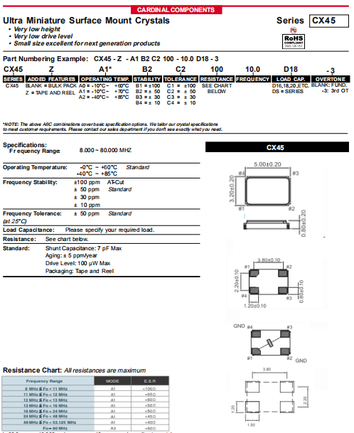 Cardinal晶振,CX45晶振,低功耗石英晶體.智能手機(jī)晶振,產(chǎn)品具有高精度超小型的表面貼片型石英晶體振蕩器,最適用于移動通信終端的基準(zhǔn)時鐘等移動通信領(lǐng)域.比如智能手機(jī),無線通信,衛(wèi)星導(dǎo)航,平臺基站等較高端的數(shù)碼產(chǎn)品,晶振本身小型,薄型具備各類移動通信的基準(zhǔn)時鐘源用頻率,貼片晶振具有優(yōu)良的電氣特性,耐環(huán)境性能適用于移動通信領(lǐng)域,滿足無鉛焊接的高溫回流溫度曲線要求.