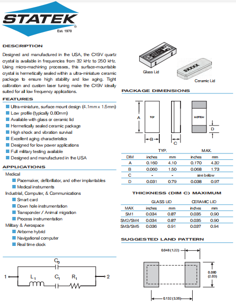Statek擁有設計和分析各種操作模式中所有機械幾何形狀的石英貼片晶振的專門知識工程專家援助.在Statek,我們致力于您的項目的成功.我們高度知識淵博的研究和開發團隊已經準備好幫助您在設計和開發的各個方面,在物理,化學,機械和電子工程等各種技術學科方面的專業知識.