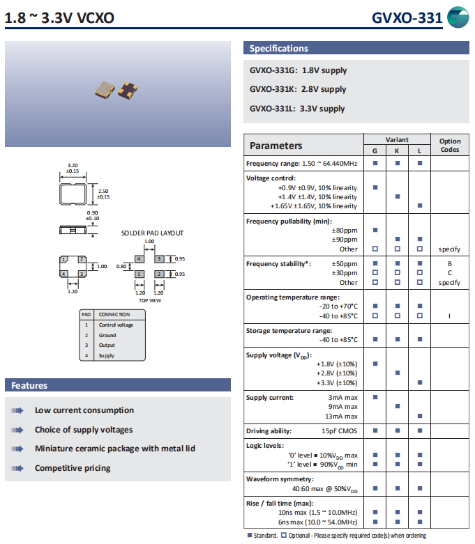 | 型號(hào) | 符號(hào) | GVXO-331 |
