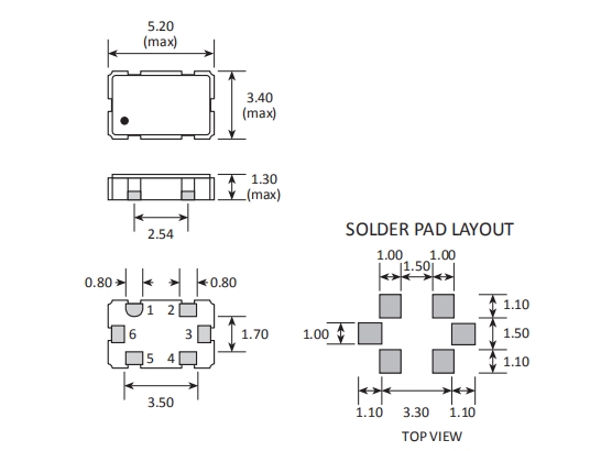 建議將輸出負載安裝在盡可能靠近石英振蕩器的地方(在20mm范圍之間).