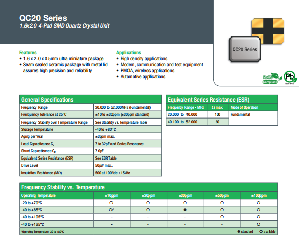 | Qantek晶振 | 單位 | QC20晶振 | 石英晶振基本條件 |