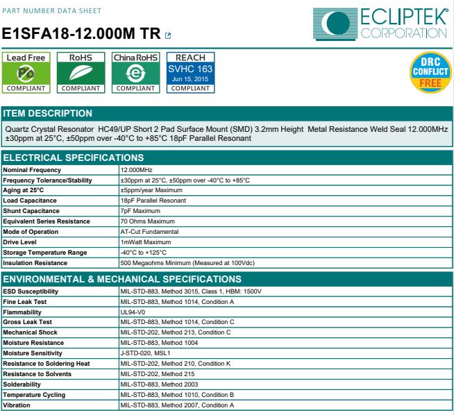 日蝕晶振,E1SFA18-12.000M-TR晶振,49SMD晶振,ECLIPTEK已經(jīng)實施了中國對危險物質(zhì)(RoHS)的限制措施,以回應(yīng)國際社會對鉛(鉛)和其他有害物質(zhì)在電子部件和組件制造中所使用的有害物質(zhì)的擔憂。ECLIPTEK公司致力于保護環(huán)境,作為負責任的企業(yè)公民。ECLIPTEK一直在努力解決電子行業(yè)的RoHS和無pb合規(guī)問題。我們的目標是逐步消除不兼容產(chǎn)品的使用,為我們的客戶提供符合要求的替代進口晶振產(chǎn)品,以及發(fā)布的生命周期的結(jié)束,從而提供足夠的時間來批準兼容的產(chǎn)品。
