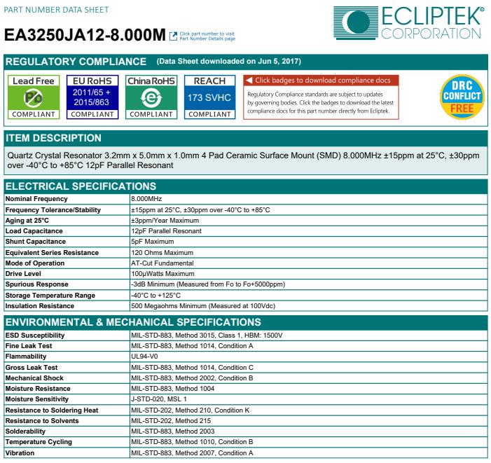 ECLIPTEK晶振將確保其振蕩器和石英晶體諧振器產品及相關設施滿足甚至超出國家的以及地方環保機構的相關法規規定及其他要求,同時該公司盡可能的參與并協助政府機關和其他官方組織從事的環保活動. 在地方對各項設施的管理責任中,確保滿足方針的目標指標,同時在各種經營與生產活動中完全遵守并符合現行所有標準規范的要求.ECLIPTEK晶振,EA3250JA12-8.000M晶振,智能手機晶振.