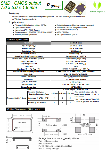 MERCURY晶振,MERCURY晶體振蕩器,HM572P有源晶體.石英晶體振蕩器在設(shè)計(jì)時(shí)就與各款型號IC匹配等相關(guān)技術(shù),使用IC與晶片設(shè)計(jì)匹配技術(shù):是高頻振蕩器研發(fā)及生產(chǎn)過程必須要解決的技術(shù)難題.在設(shè)計(jì)過程中除了要考慮石英晶體諧振器具有的電性外,還有石英晶體振蕩器的電極設(shè)計(jì)等有它的特殊性,必須考慮振蕩器的供應(yīng)電壓,起動(dòng)電壓和產(chǎn)品上升時(shí)間,下降時(shí)間等相關(guān)參數(shù).