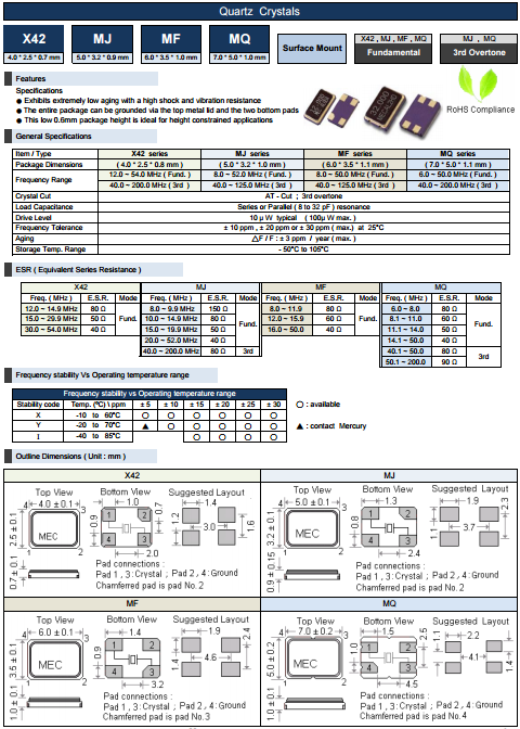 | MERCURY晶振 | 單位 | X42晶振 | 石英晶振基本條件 |