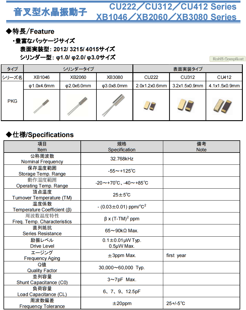 NAKA進口音叉晶振,環保無鉛晶振,XB308032.768K高精度晶振,日本進口晶振,NAKA晶振公司,32.768K晶振,二腳晶振,石英晶振,高精度晶振,低損耗晶振,圓柱晶振,308晶振,無源晶振,XB3080晶振,插件晶振,智能手表晶振,石英晶振,使用范圍廣,豐富的包裝尺寸,表面安裝類型:2012/ 3215/ 4015尺寸,圓柱型:φ1.0/ φ2.0/ φ3.0尺寸,NAKA晶振公司是一家全面服務的頻率控制設備制造商,專業給市場提供各種石英晶振等產品。