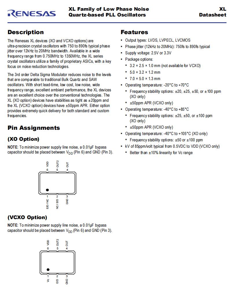 | XLH526031.250000I | Renesas Electronics America Inc | XL | 31.25 MHz | LVCMOS | 2.5V | ±25ppm |
