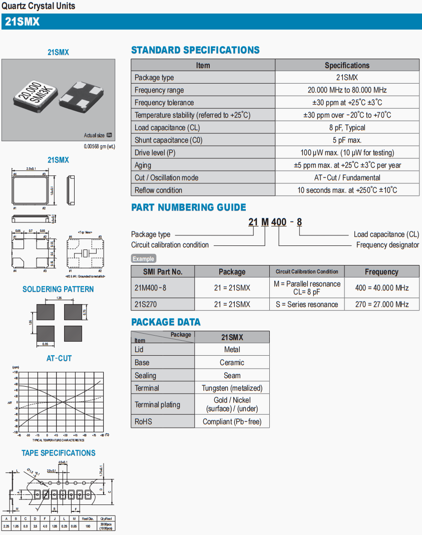 21M384-16晶振,SMI日產小型晶振,電腦主板晶振,日本SMI晶振公司,高品質晶振,石英晶振,貼片晶振,無源晶振,6G晶振,6G基站控制器晶振,21SMX晶振,低損耗晶振,2016晶振,超小型晶振,日本進口晶振,四腳晶振.貼片石英晶體,體積小,焊接可采用自動貼片系統,產品本身小型,表面,特別適用于有小型化要求的市場領域,因產品小型,薄型優勢,耐環境特性,包括耐高溫,耐沖擊性等,在移動通信領域得到了廣泛的應用,晶振產品本身可發揮優良的電氣特性,滿足無鉛焊接的高溫回流溫度曲線要求.