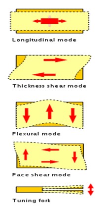 石英晶體的優(yōu)點(diǎn)是在溫度變化時(shí),影響震盪頻率的彈性係數(shù)與尺寸變化輕微,因而在頻率特性上表現(xiàn)穩(wěn)定。共振的特性還取決於振動(dòng)模式與石英的切割角度(相對(duì)於晶軸而言),目前常用的是 AT 切割,它的振盪是厚度剪切(thickness shear)振盪模式。 此外,在需要高精密度與穩(wěn)定性的嚴(yán)格場(chǎng)合,石英晶體會(huì)放置於恆溫箱(Crystal oven)與吸振容器內(nèi),以防止外部溫度與震動(dòng)的干擾。