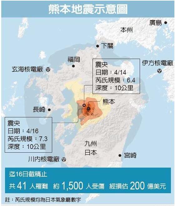 直擊現(xiàn)場(chǎng)新聞報(bào)道4月16日00時(shí)25分在日本九州島熊本縣發(fā)生7.3級(jí)地震,震源深度10千米.截至今天上午9時(shí),在7級(jí)連環(huán)強(qiáng)震中,已有24人遇難,900余人受傷.一些建筑物被毀,同時(shí)出現(xiàn)道路龜裂崩塌,大橋斷裂.該地區(qū)九州是日本半導(dǎo)體產(chǎn)業(yè)重鎮(zhèn),初估包括Sony影像感測(cè)器、東京威力科創(chuàng)微影設(shè)備及日本勝高矽晶圓等,都是半導(dǎo)體重要關(guān)鍵零組件供應(yīng)大廠,索尼是蘋果主要供應(yīng)商來(lái)源,有2座工廠處于地震中心附近,位于熊本縣的制造廠受到嚴(yán)重的影響停工,人員也無(wú)法進(jìn)入,若沒(méi)有庫(kù)存支應(yīng)未來(lái)勢(shì)必會(huì)波及蘋果的生產(chǎn)出貨,導(dǎo)致陷入供應(yīng)鏈危機(jī).