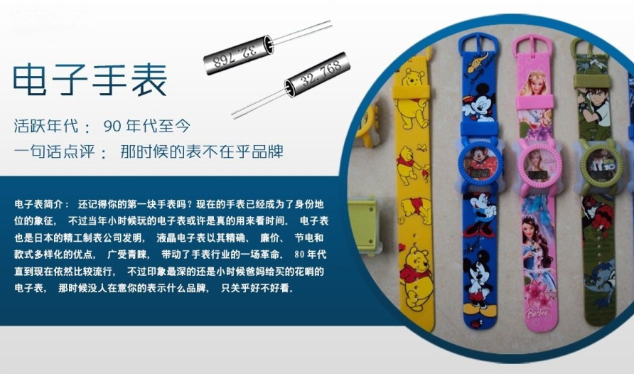 還記得小時候帶的電子手表嗎?電子表對我兒時的印象很深,記得讀小學三年級的時候班里有個同學他媽媽給他買了一塊電子表,很漂亮,因為是小孩子嗎?總喜歡拿著別人沒有的東西在別人面炫耀,隨著時間的過去班里有越來越多的同學都賣了電子表,后來有一天放學回到家里我就和我媽媽說我要買電子表,班里很多人都買了,可是媽媽沒有答應,那時候的電子表很便宜幾塊錢就能買到,可媽媽一直沒有跟我買,直到我讀四年級了那天我過生日,媽媽送給我一塊電子表當生禮物,當時特別高興,那是我擁有的第一塊電子手表??墒菦]有帶多久有一次和同學玩耍時不小心把表給弄壞了,不動了,拿回家爸爸把表拆開來看能不能修好,當時我看到里面有很多奇奇怪怪的東西,也不知道是什么,可有一顆小東西到今天我接觸了這個行業(yè)才知道,原來它叫做晶振元件,是給電子表提供時間顯示的一顆電子元件。電子表最早由日本精工制表公司發(fā)明,而精工早期是做手表的,慢慢得也開始生產晶振,才會有今天的精工晶振品牌。