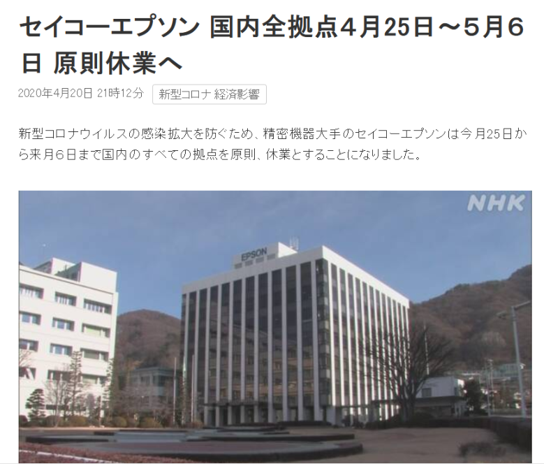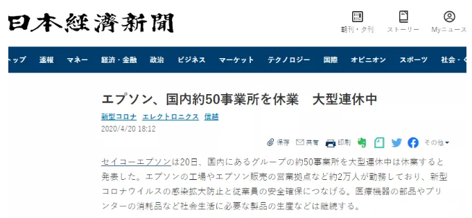 在日本企業(yè)中愛普生集團(tuán)不是首家因新冠病毒疫情影響停工的企業(yè)了,較上周有東芝也宣布在日本本土內(nèi)所有企業(yè)停工,相信最近相繼宣布的企業(yè)會越來越多。